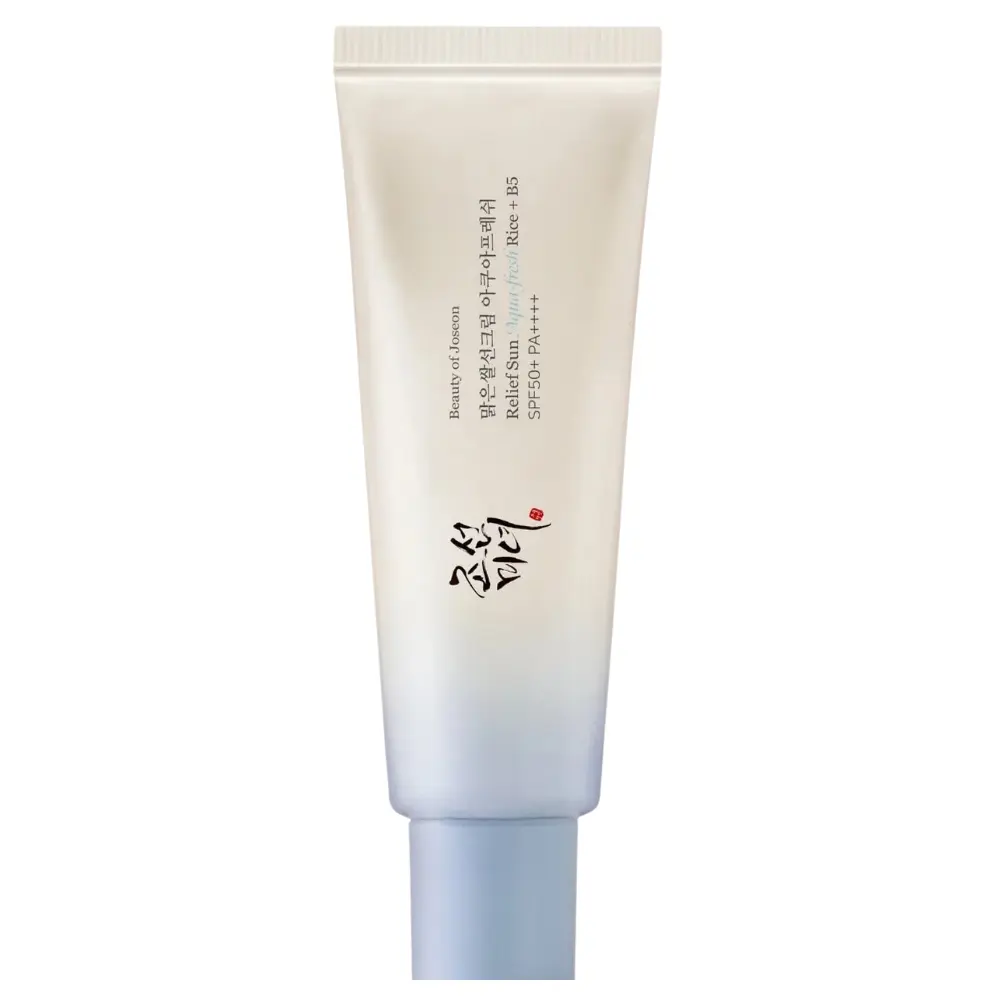 BEAUTY OF JOSEON Relief Sun Aqua-Fresh : Rice + B5 (SPF50+ PA++++) to lekki, ochronny krem przeciwsłoneczny inspirowany koreańską pielęgnacją skóry, w której ochrona UV jest kluczowym elementem codziennej rutyny. Ten wegański krem zapewnia bardzo wysoką ochronę przed promieniowaniem słonecznym, jednocześnie pielęgnując skórę i zapobiegając jej przesuszeniu. Formuła kremu została opracowana tak, aby nie obciążać cery i nie pozostawiać lepkiej warstwy. Regularne stosowanie wspiera zachowanie młodego wyglądu skóry oraz chroni ją przed negatywnym wpływem słońca. Produkt doskonale sprawdzi się przy każdym typie cery, również wrażliwej. To niezastąpiony element codziennej, koreańskiej ochrony przeciwsłonecznej.