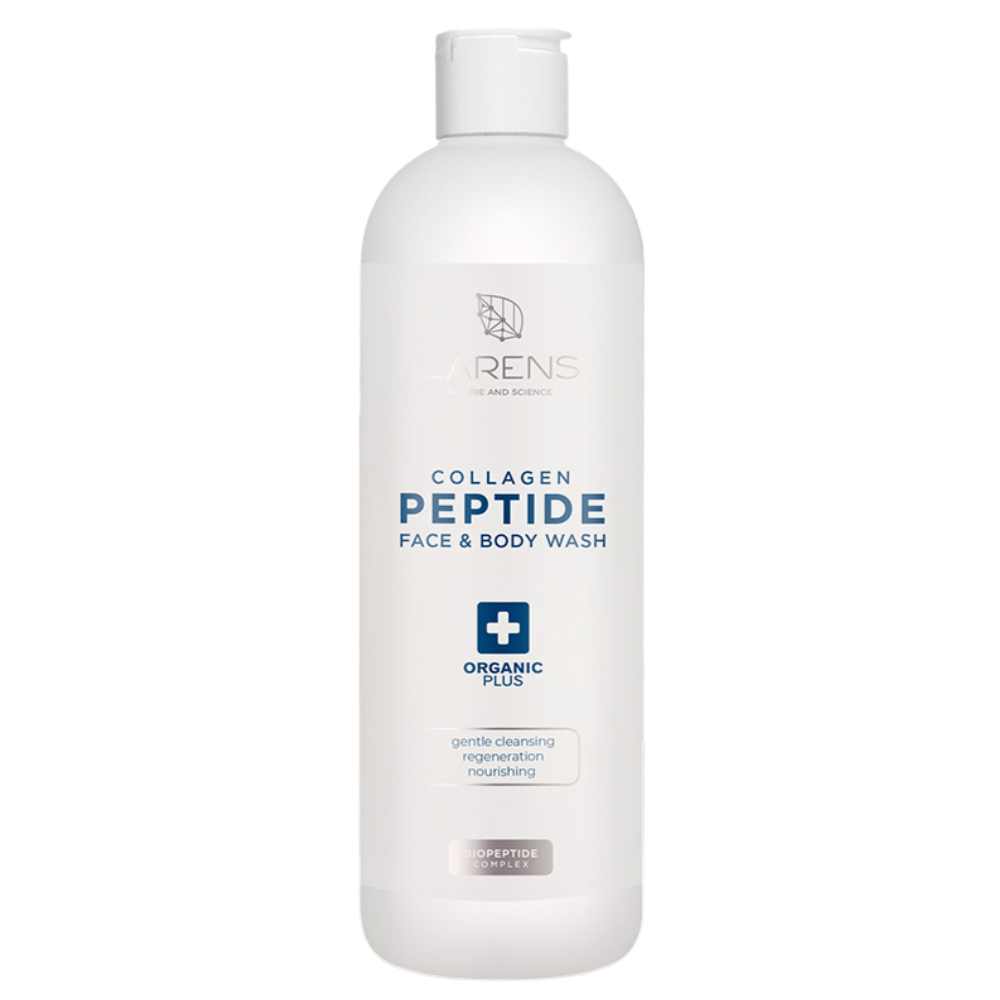 LARENS Collagen Peptide Face & Body Wash to regeneracyjno-odżywczy żel do mycia twarzy i ciała, który łączy skuteczne oczyszczanie z pielęgnacją skóry już na etapie mycia. Dzięki zawartości bioaktywnych peptydów kolagenowych wspiera odbudowę skóry oraz poprawia jej elastyczność i jędrność. Produkt skutecznie usuwa zanieczyszczenia i makijaż, jednocześnie nie powodując uczucia ściągnięcia. Formuła została wzbogacona o naturalne składniki takie jak olej makadamia, aloes oraz minerały morskie, które intensywnie odżywiają skórę. Regularne stosowanie sprawia, że skóra staje się miękka, gładka i wyraźnie bardziej nawilżona. Kosmetyk posiada wegańską formułę i bazuje na składnikach wspierających naturalną równowagę skóry. To idealny produkt do codziennej pielęgnacji dla każdego rodzaju cery, także wrażliwej.