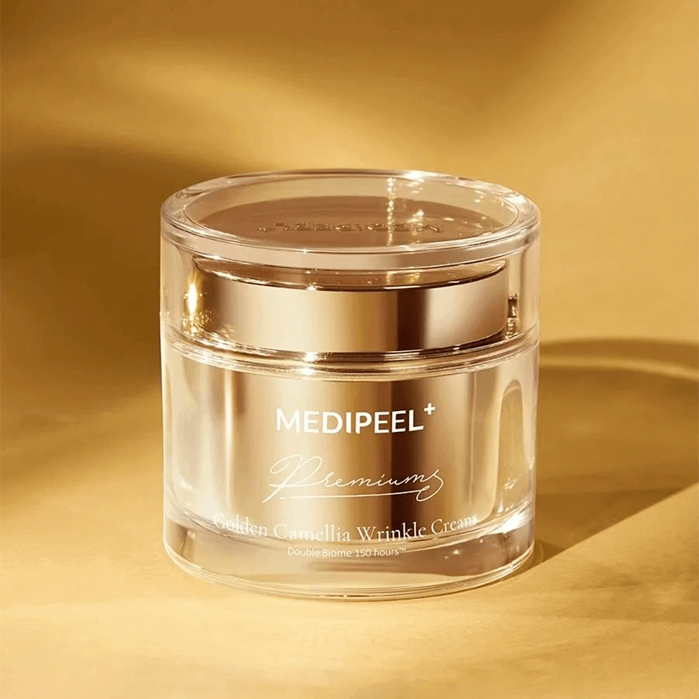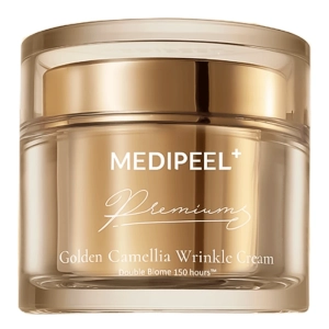 MEDI-PEEL Premium Golden Camellia Wrinkle Cream to luksusowy krem przeciwstarzeniowy, który skutecznie poprawia jędrność i elastyczność skóry. Formuła oparta na peptydach, ekstrakcie z kamelii oraz złocie koloidalnym intensywnie odżywia i regeneruje skórę. Krem wspiera redukcję zmarszczek oraz poprawia owal twarzy, przywracając cerze młodszy wygląd. Dzięki bogatej, ale komfortowej konsystencji zapewnia długotrwałe nawilżenie bez uczucia ciężkości. Regularne stosowanie sprawia, że skóra staje się wygładzona, promienna i bardziej napięta. Produkt posiada wegańską formułę i bazuje na składnikach wspierających naturalne procesy regeneracyjne skóry. To idealny wybór dla skóry dojrzałej oraz wymagającej intensywnej pielęgnacji.