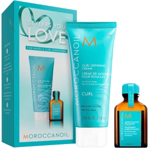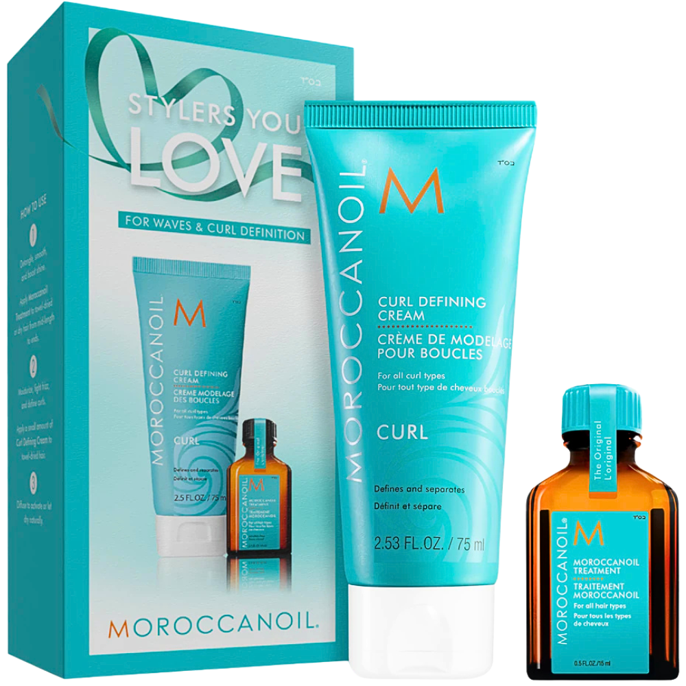 Zestaw Moroccanoil Curl Stylers You Love to kompleksowa pielęgnacja dla włosów kręconych i falowanych. W skład zestawu wchodzi krem definiujący loki oraz kuracja arganowa, które wspólnie zapewniają intensywne nawilżenie, kontrolę nad puszeniem i podkreślenie naturalnego skrętu. Formuły oparte na oleju arganowym i białkach roślinnych wzmacniają włosy, nadając im elastyczność i blask. Produkty nie obciążają włosów, a ich lekka konsystencja sprawia, że są idealne do codziennego stosowania. Zestaw przeznaczony jest dla wszystkich rodzajów włosów kręconych, w tym farbowanych i poddawanych zabiegom chemicznym.